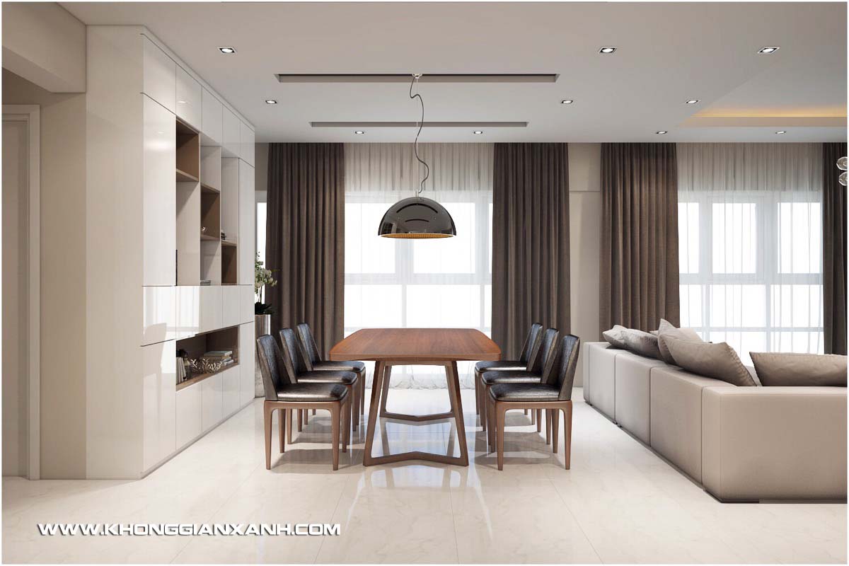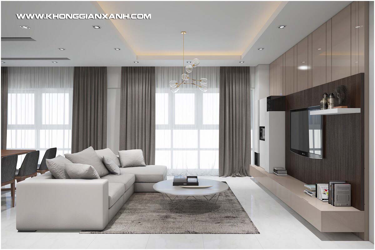 Căn hộ 135 m2 ở Chung cư cao cấp Happy Valley được bàn giao với không gian trống hoàn toàn với view đẹp nhìn ra khu hồ bơi và sân vườn phía dưới. Khi nhận được yêu cầu thiết kế nội thất chung cư Happy Valley từ chủ đầu tư là một khách hàng cũ của Kiến trúc Không Gian Xanh, các yêu cầu về một không gian mở với nội thất hiện đại và tiện nghi luôn được chủ đầu tư đặt trọng tâm, cùng với đó là việc thiết kế để tạo tận dụng ưu thế view nhìn rất đẹp của căn hộ.
