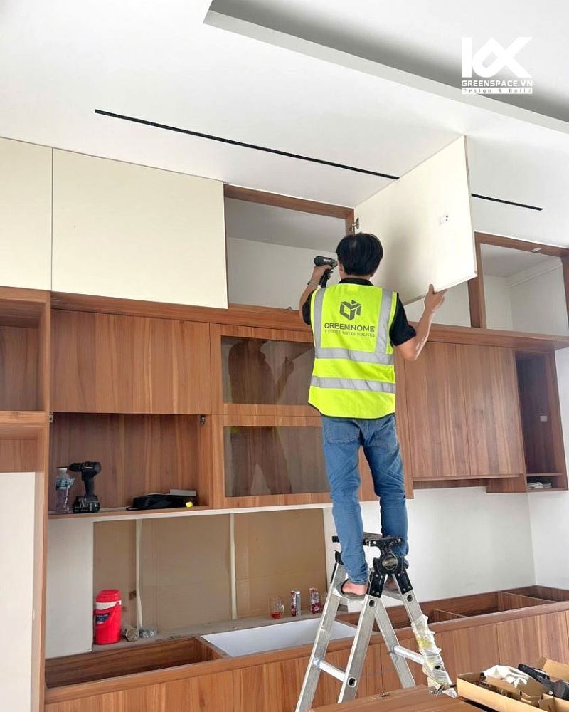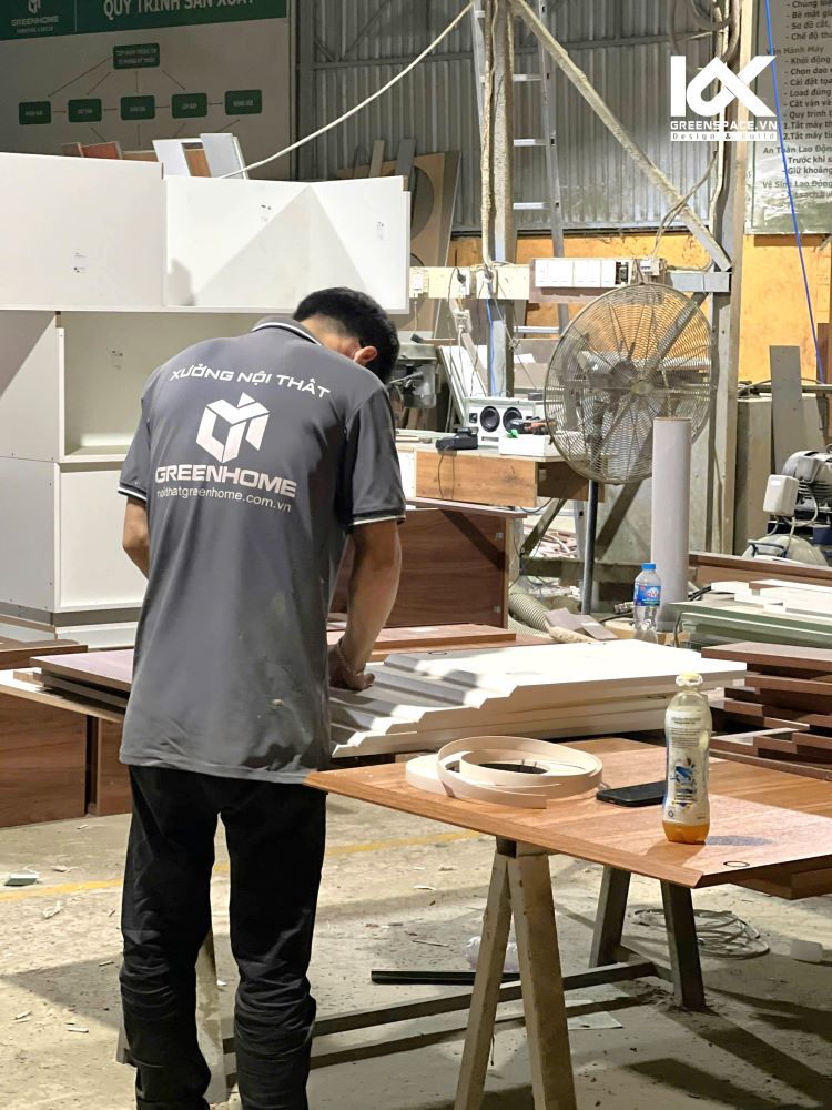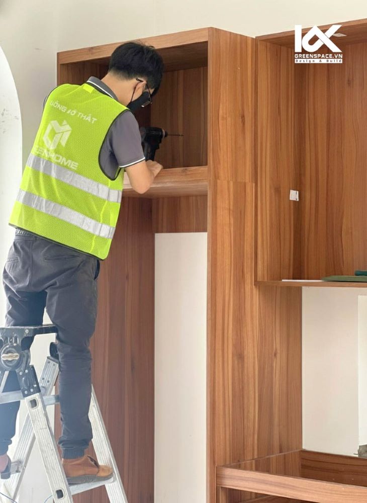 -Chuẩn bị lắp đặt nội thất theo đúng thiết kế 3D, đảm bảo khớp từng chi tiết.