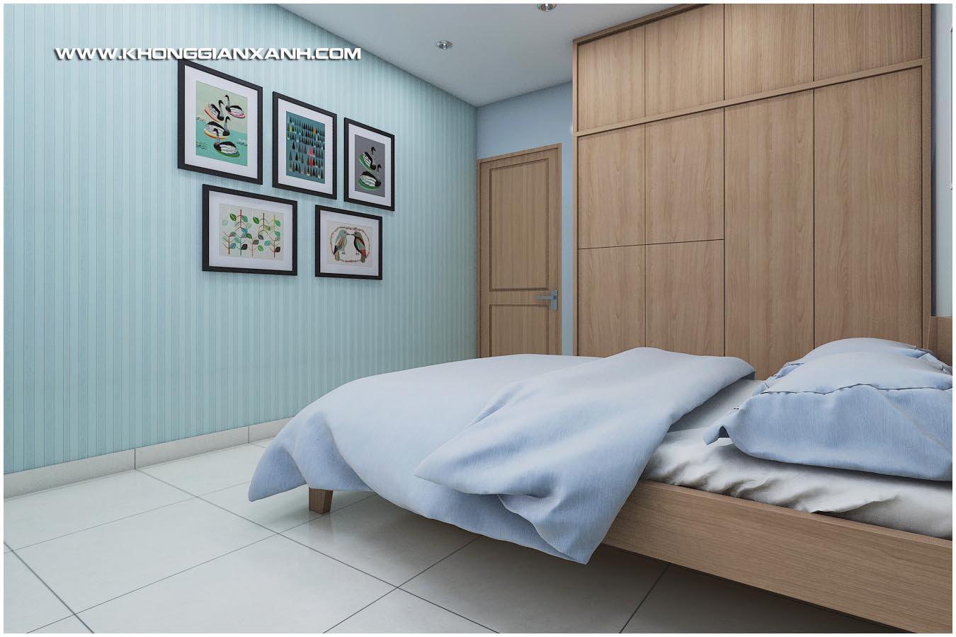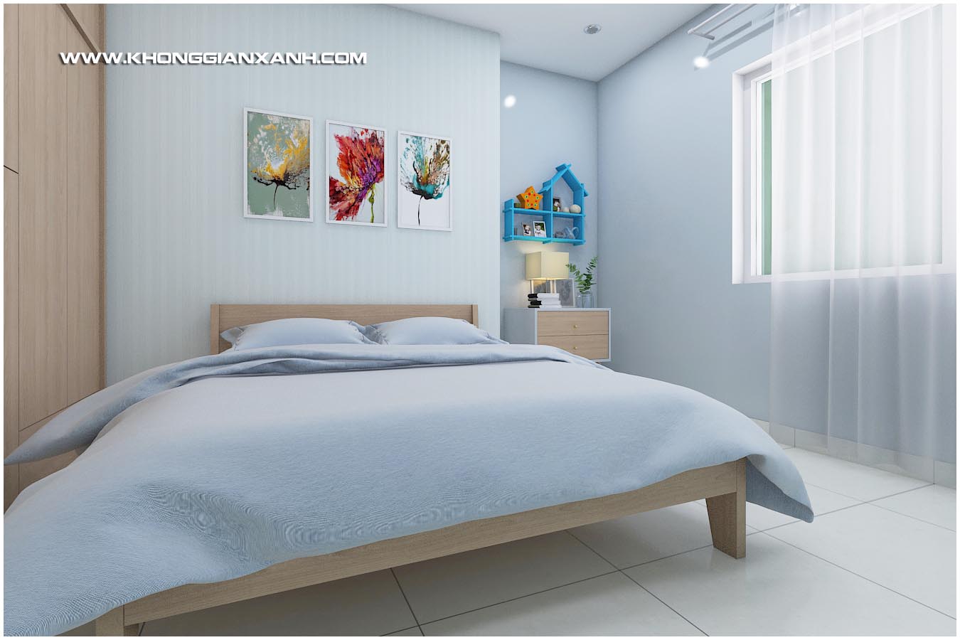 Các không gian ngủ sủ dụng các ton màu sinh động tạo vẻ an nhiên trong không gian sống và tận dụng tối đa các view của từng phòng ra các không gian bên ngoài chung cư.