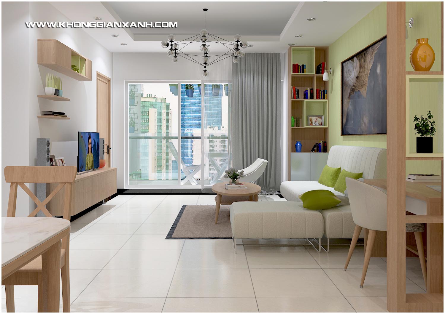 Nhận được yều cầu Thiết kế nội thất căn hộ Vũng Tàu của chị, Kiến trúc Không Gian Xanh qua trao đổi các ý tưởng và các mong muốn của gia chủ dành cho công trình của mình đã triển khai lên phương án sơ bộ trình chủ đầu tư. Với phong cách nhẹ nhàng, tạo nét sinh động cho căn hộ, các thiết kế sử dụng nhiều màu sắc hài hòa, sử dụng các chất liệu gỗ công nghiệp hiện đại và tiện sử dụng.