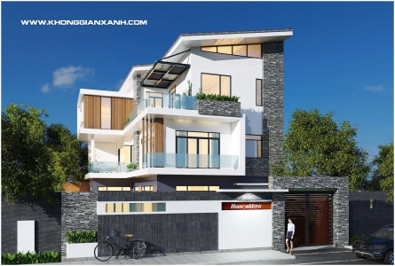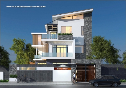 Với qui mô thiết kế 3 tầng, tổng diện tích sử dụng gần 400m2 sàn, được thiết kế theo phong cách hiện đại với hình khối mạnh mẽ, bố trí các không gian theo hướng mở. Các không gian chính của căn nhà bao gồm phòng khách, khu bếp và bàn ăn liên thông nhau và tràn ngập ánh sáng được lấy thông qua các cửa sổ lớn.