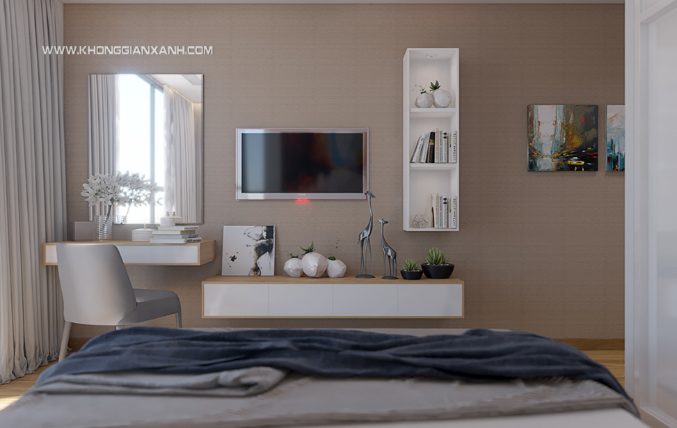 Bàn trang điểm được đặt bên cạnh giường ngủ
