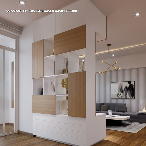 Kệ trang trí kết hợp vách ngăn bằng gỗ
