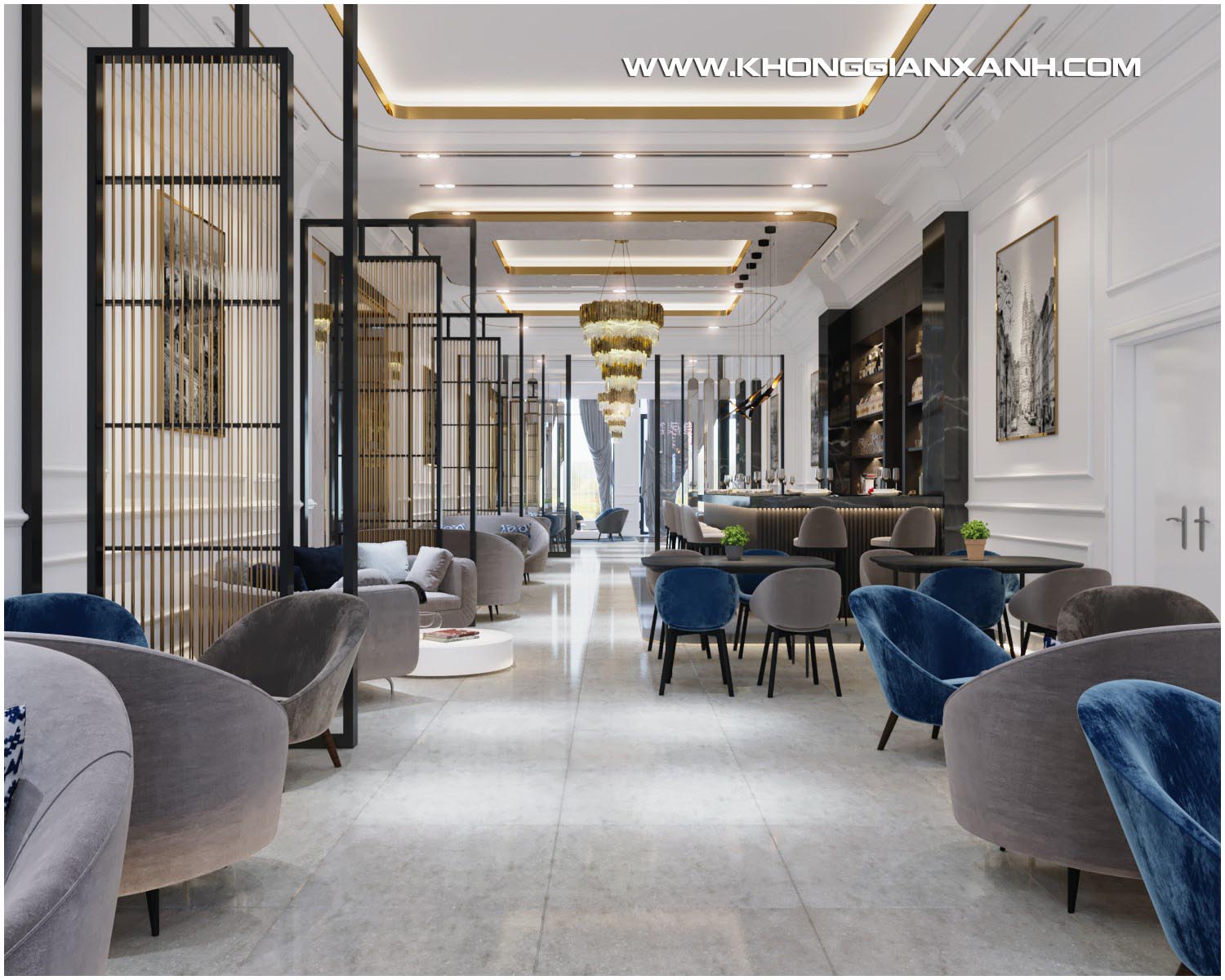 Không đặt nặng về số lượng bàn ghế để kinh doanh, hệ thống bàn ghế cafe của quán được bố trí vừa phải để nhấn mạnh tính sang trọng của tòa nhà cũng như tôn lên nét đẹp tổng thể.