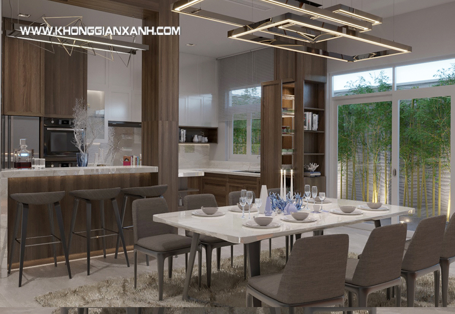 Bộ bàn ăn sang trọng, hiện đại – thiết kế và thi công biệt thự quận Bình Chánh
