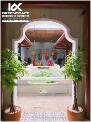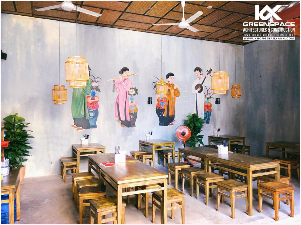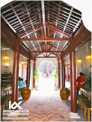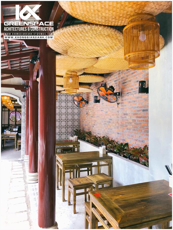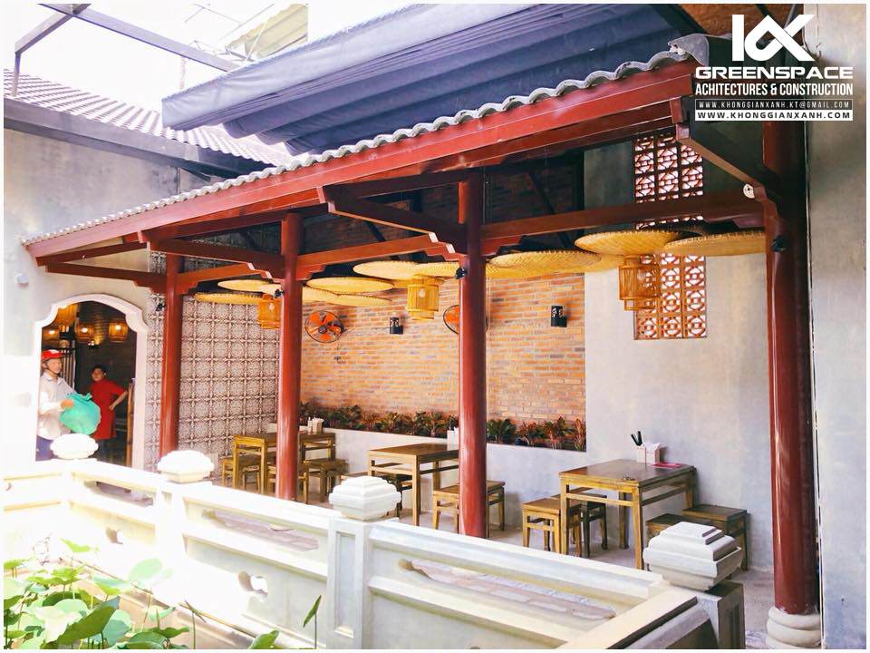 Với quy mô sử dụng 346m2, công trình mang phong cách xưa cổ, đậm chất Bắc Bộ, sử dụng chủ yếu gỗ, cót tre và các vật liệu tự nhiên khác để tạo sự mộc mạc, gần gũi . Toàn bộ nội thất công trình được thi công bởi xưởng mộc Green Wood – Phân xưởng sản xuất nội thất gỗ chuyên nghiệp của Kiến trúc Không Gian Xanh tại Tp Vũng Tàu. Công trình hoàn thành kịp tiến độ góp phần tạo một không gian mới lạ – một nốt trầm giữa lòng phố biển Vũng Tàu.