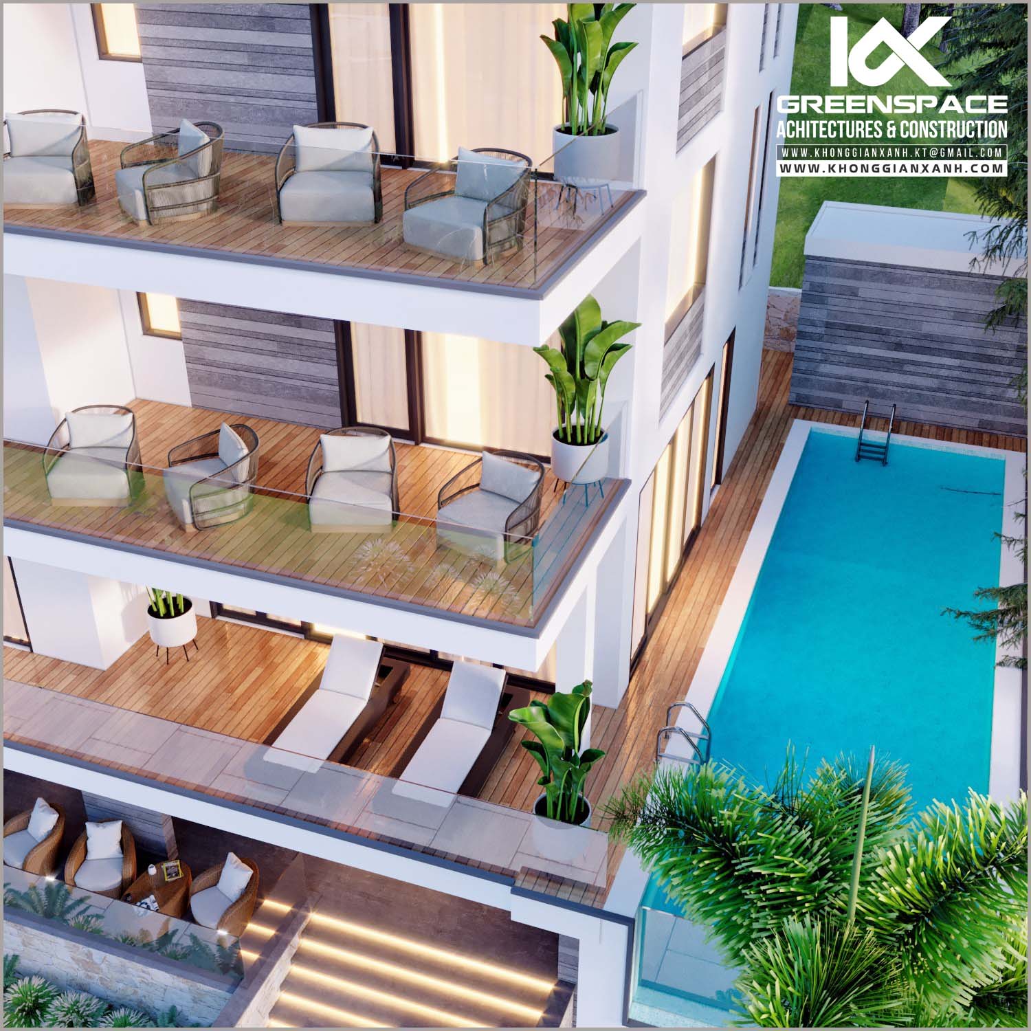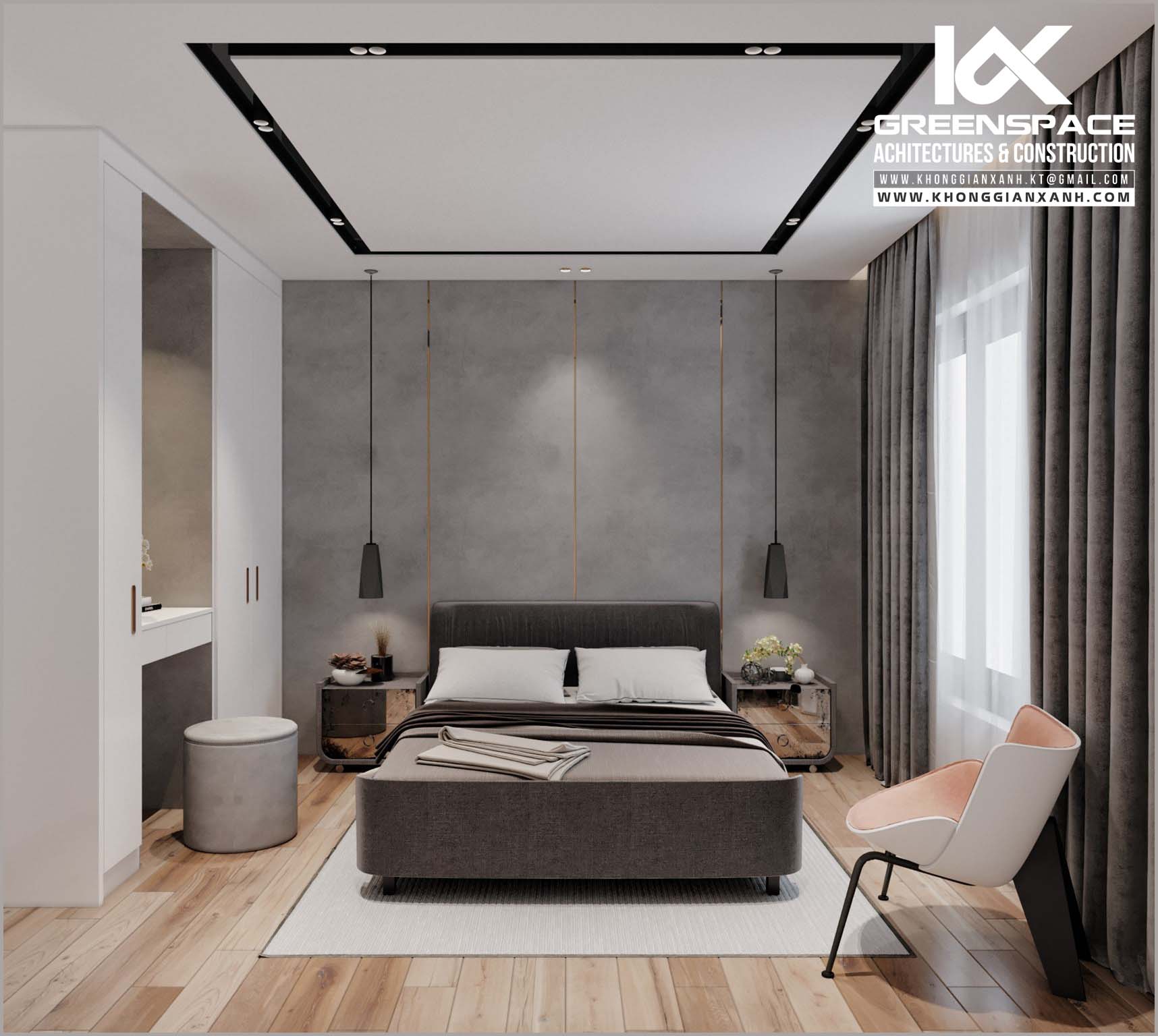 Bếp ăn đơn giản nhưng vẫn sang trọng Hồ bơi xanh mát bên cạnh biệt thự vừa để thư giãn vừa tạo cảnh quan Sảnh chờ sang trọng Phòng ngủ tạo ấn tượng với 2 tông màu tương phản