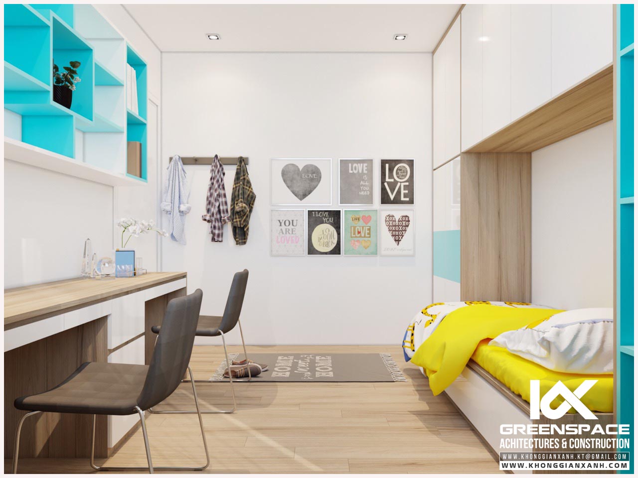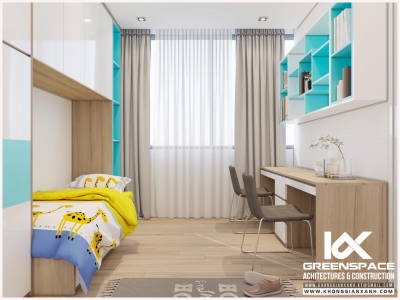 Phòng ngủ nhỏ cho các thành viên nhí và góc học tập bên cạnh