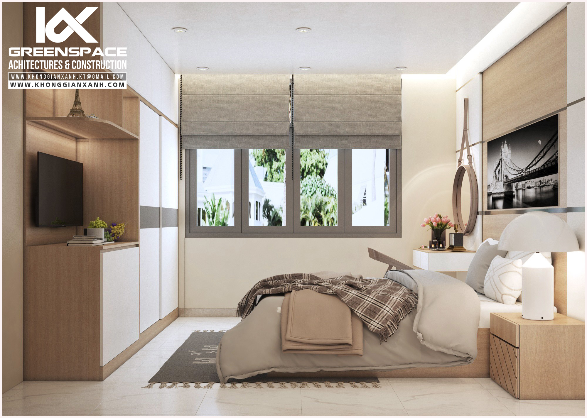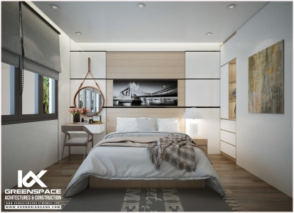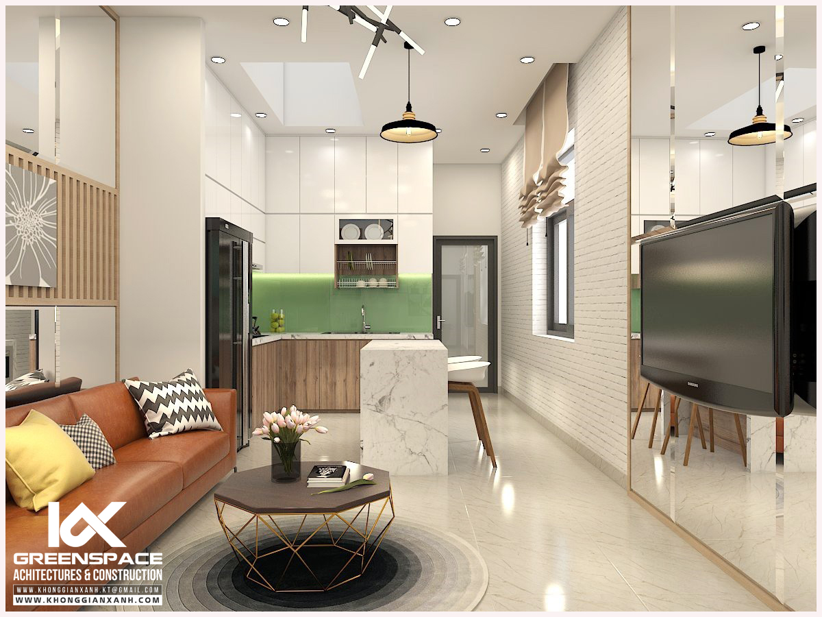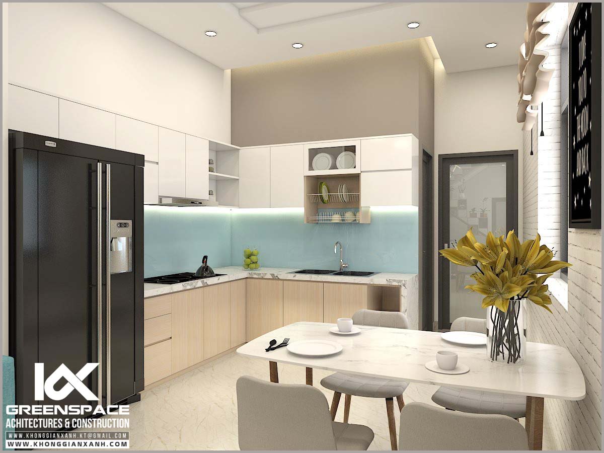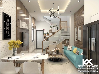 Với tiêu chí giải quyết bài toán về hình thức thẩm mỹ và không gian sử dụng, các kiến trúc sư trẻ của Kiến trúc Không Gian Xanh Tp Vũng Tàu áp dụng phong cách thiết kế hiện đại, sử dụng tông màu sáng làm chủ đạo để tạo cảm giác rộng thoáng cho diện tích thực tế hạn chế, đồ nội thất tinh tế tối giản, đủ tiện nghi nhưng không chiếm quá nhiều không gian.