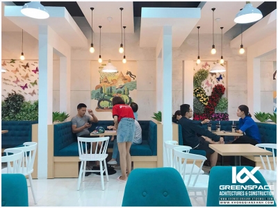 Nội thất làm từ gỗ MDF và gỗ MFC cao cấp kết hợp với các mẫu ghế ngồi có nhiều màu sắc khác nhau, tạo nên sự trẻ trung năng động cho công trình.