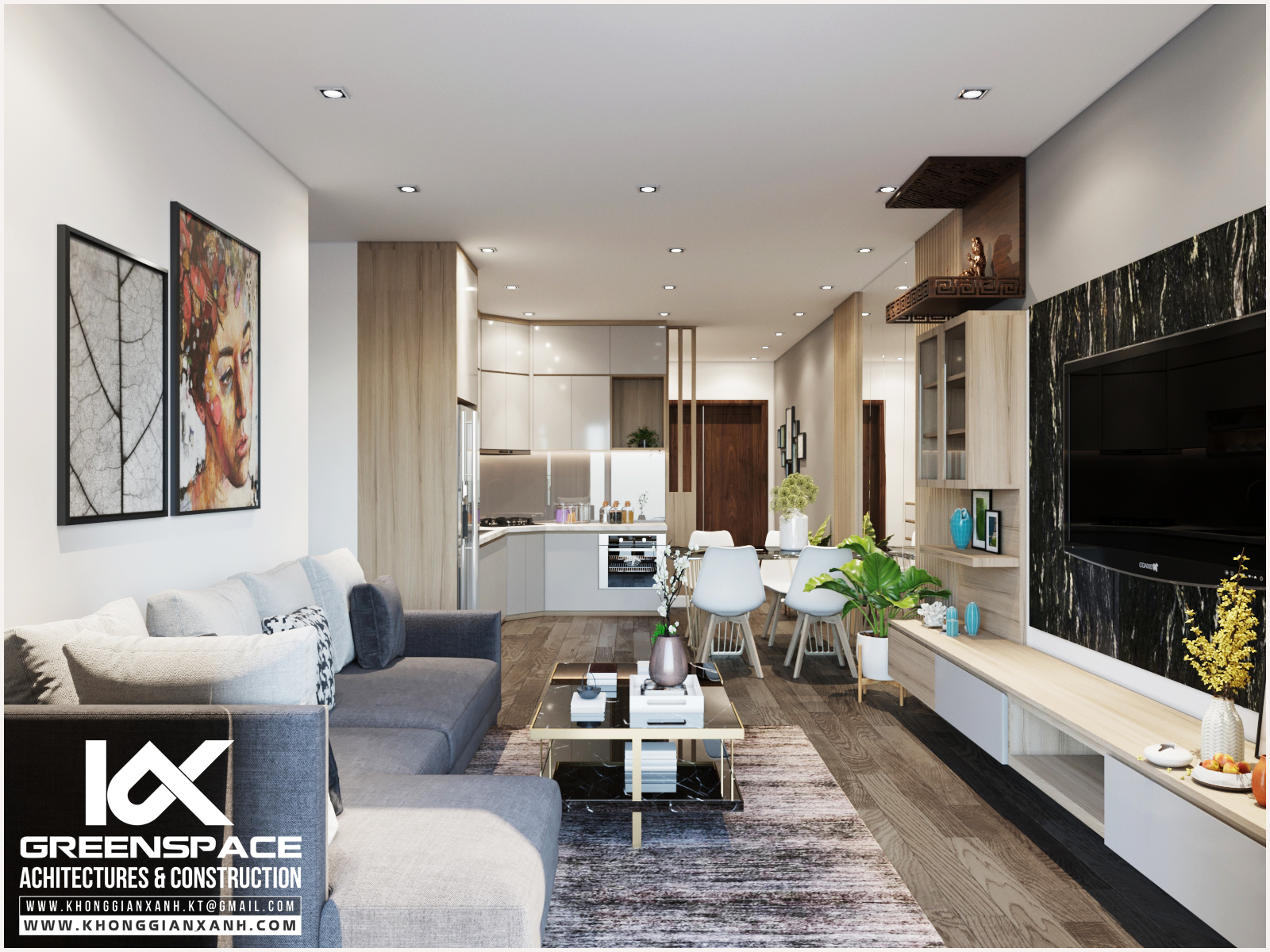 Phong cách thiết kế: đơn giản, hiện đại. Tông màu chủ đạo: xám, trắng