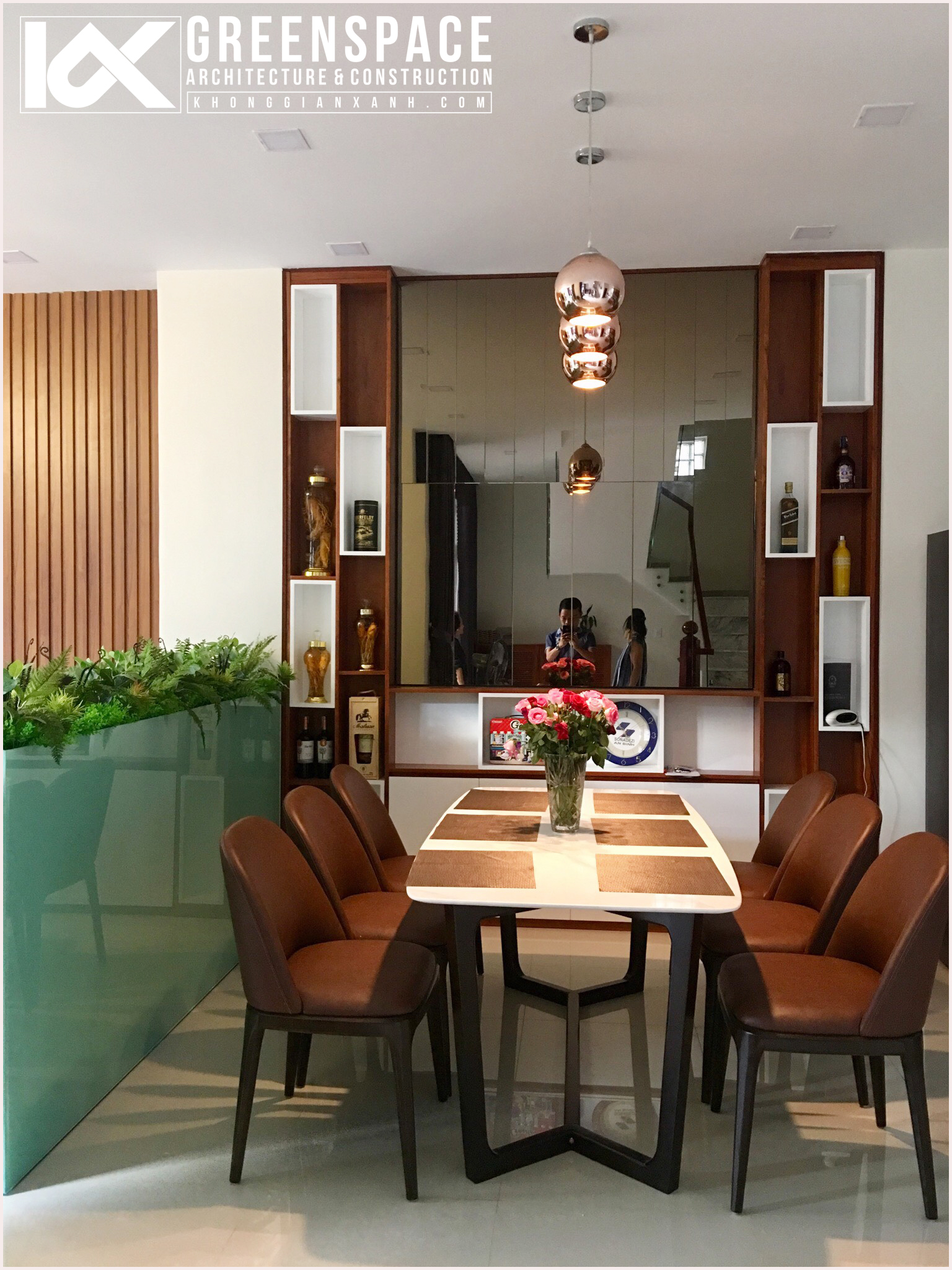 Công trình nhà phố với diện tích 135m2, 1 trệt 1 lầu, 3 phòng ngủ đáp ứng nhu cầu các thành viên trong gia đình, sử dụng chất liệu gỗ đỏ tự nhiên cho phần nội thất gỗ của công trình, vừa đảm bảo tính bền chắc vừa đáp ứng được tính thẩm mỹ cho căn nhà. Chủ đầu tư rất hài lòng khi nhận bàn giao công trình từ Kiến Trúc Không Gian Xanh.