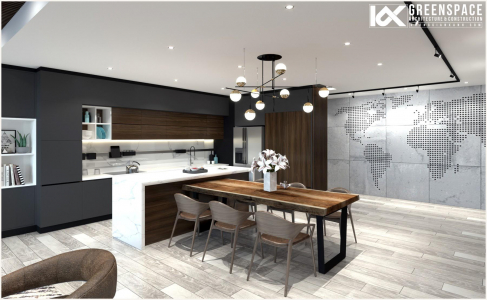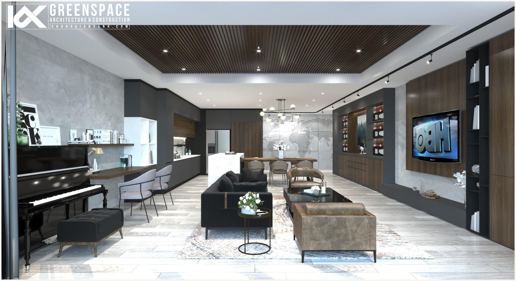 Với diện tích khá rộng (215m2) penthouse được chia thành nhiều khu vực chức năng riêng biệt, rộng rãi tạo sự thoải mái tối đa cho gia chủ.
