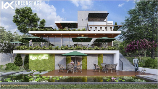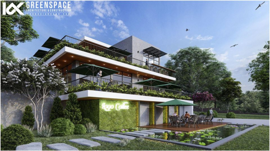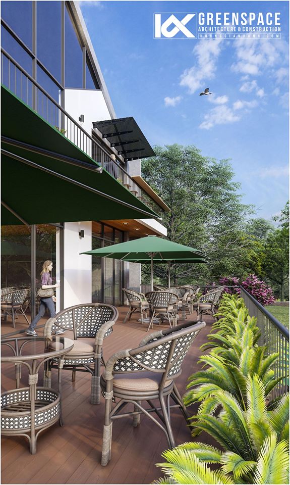 Công trình được thiết kế bởi các KTS nhiều năm kinh nghiệm trong lĩnh vực tư vấn thiết kế công trình nghỉ dưỡng và cafe thuộc Kiến trúc Không Gian Xanh Vũng Tàu.