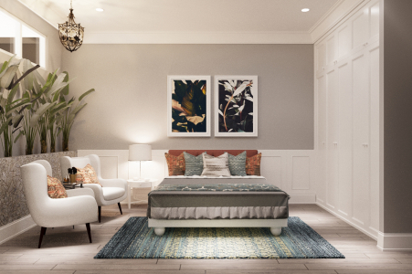 Nội thất công trình được thiết kế theo phong cách hiện đại xen kẽ sự cá tính, độc đáo để phù hợp với công năng cho thuê của công trình.