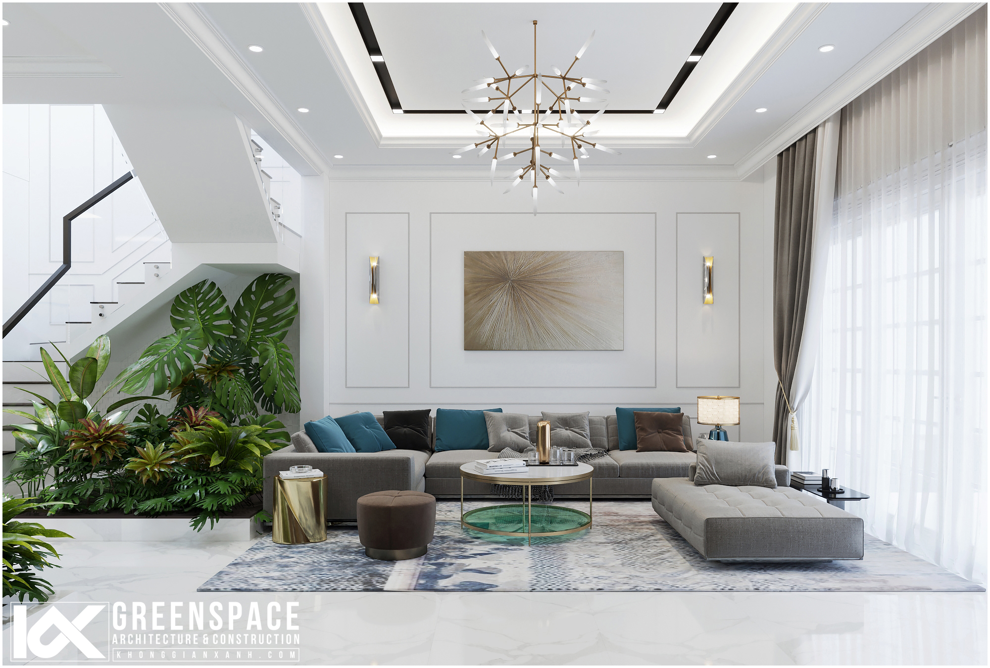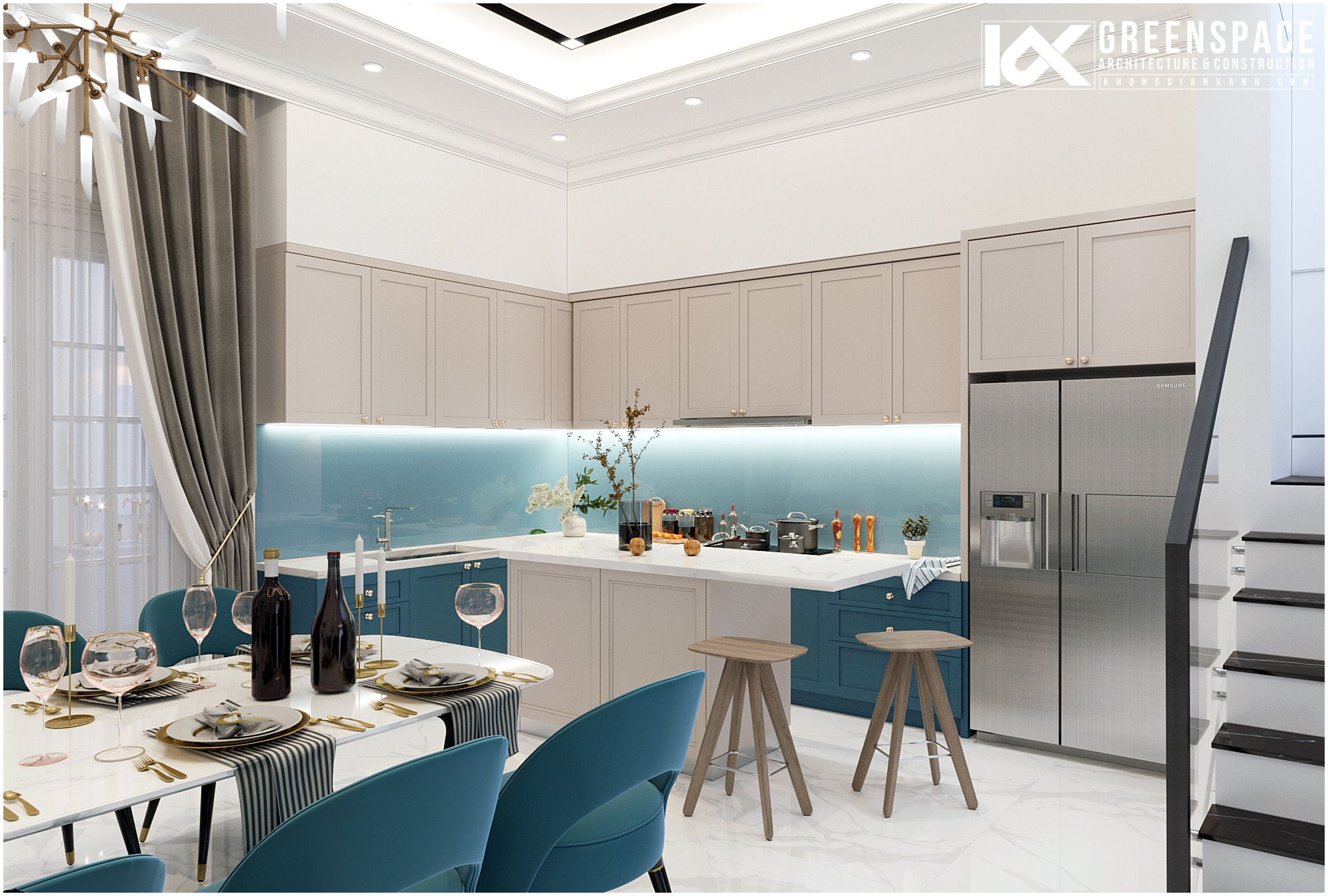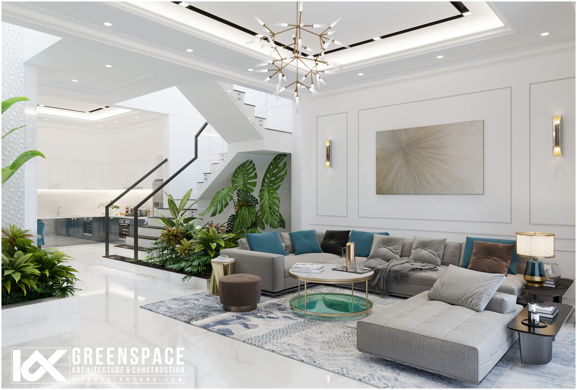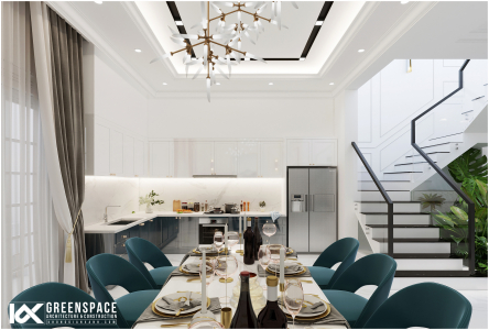 Công trình mang vẻ đẹp hiện đại tinh tế pha lẫn chút sang trọng của phong cách tân cổ điển. Với tone màu sáng chủ đạo, cùng sự kết hợp giữa chất liệu và bố cục thiết kế tạo nên một không gian sống sang trọng, hiện đại và đẳng cấp! Công trình nằm trong chuỗi dự án thiết kế nội thất nhà phố tân cổ điển do Kiến trúc Không Gian Xanh Vũng Tàu triển khai trong năm 2020…